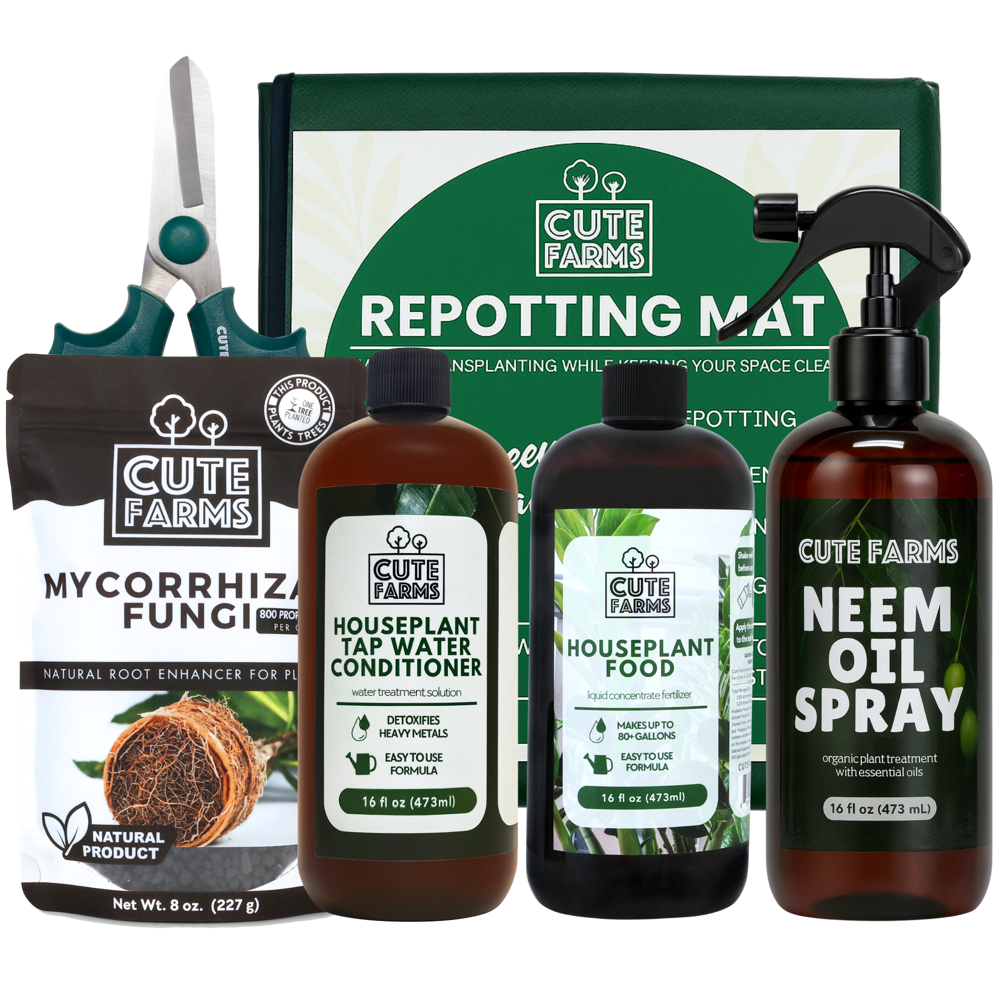 The Premium Plant Care Kit includes everything you need to keep your houseplants happy and thriving. From boosting root health and conditioning tap water to feeding, protecting, and pruning your plants, this all-in-one set makes plant care simple and effective. It even comes with a repotting mat to keep things tidy.
